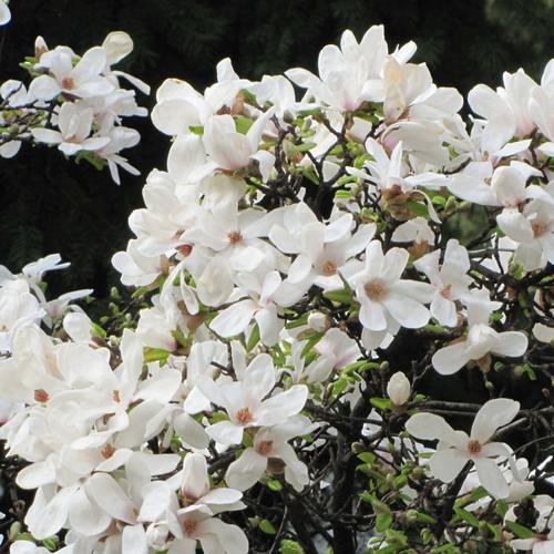 Цветет магнолия Кобус с середине весны, пока еще не распустилась полностью листва, и длится цветение около двух недель. Обычно это конец апреля.