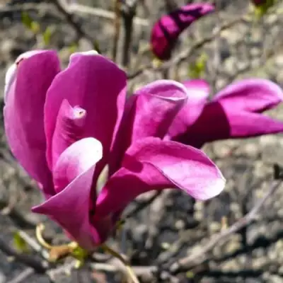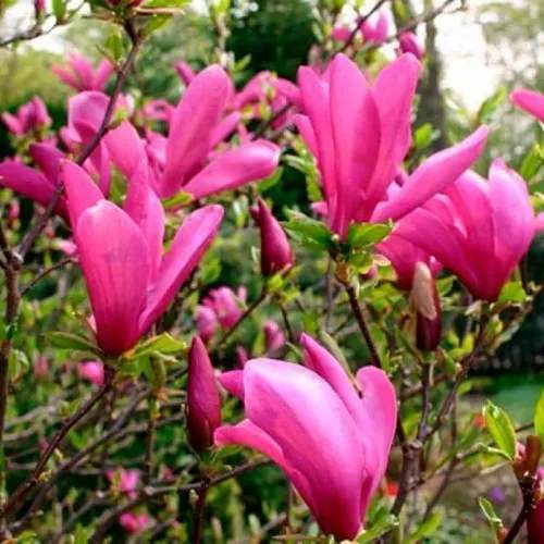Цветение магнолии Сьюзан стартует в апреле-мае, а продолжаться может вплоть до конца первого летнего месяца. Соцветия своим внешним видом слегка напоминают крупные бокалы, смотрящие вверх. Диаметр одного цветка с шестью лепестками может составлять 15 см. Светло-розовые бутоны обладают ярким и очень приятным ароматом. Плоды – шишкообразные сборные листовки. Плодоносит в сентябре. Магнолия морозостойка, выдерживает температуру до -25 градусов.