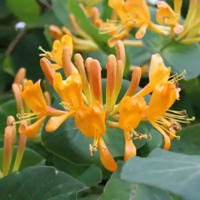 Главная причина, по которой садоводы стремятся купить декоративную жимолость Тельмана в Беларуси, — её цветение. В конце мая лиана покрывается многочисленными крупными удлинёнными цветками насыщенного янтарно-оранжевого оттенка. Цветки собраны в пышные соцветия и смотрятся особенно эффектно на фоне зелени. Цветение продолжается до июля, иногда повторяется волнами, а лёгкий сладковатый аромат хорошо ощущается ближе к вечеру. После цветения появляются аккуратные декоративные ягодки, которые дополнительно украшают растение.