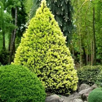 Крона ели Рейнбоуз Энд имеет форму широко конусовидную или пирамидальную, что добавляет вертикальности вашей композиции. Нежная и тонкая хвоя длиной 1-1,5 см, благодаря своей мягкой структуре, делает это растение особенно привлекательным. Окраска хвои колеблется от зелёного до кремово-желтого в период появления молодого прироста, что добавляет яркости и разнообразия в ваше озеленение.