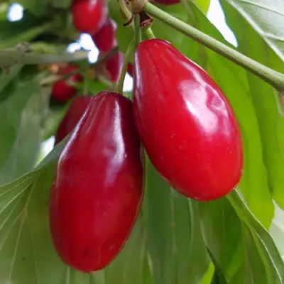 Плоды очень красивые, блестящие, темно-красного цвета.