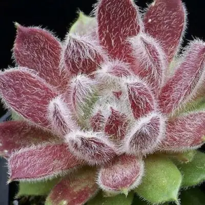 Компактные розетки диаметром 3–5 см плотно прижаты к земле, образуют аккуратные «шапочки» из плотных, мясистых, ланцетных листьев. Окраска варьируется от зелёной до бордово-красной, особенно в условиях яркого солнца. Ворсинки на кончиках листьев сплетаются в плотную "паутину", придавая растению загадочную фактуру и подчёркивая его природную геометрию.