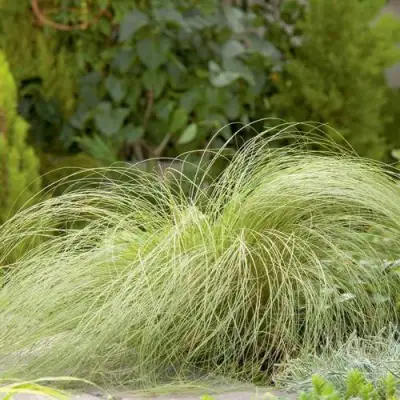 Одной из главных привлекательных черт осоки Фростед Керлз являются её впечатляющие листья. Волосковидные, линейные, шириной всего 1 мм, они имеют восхитительный зеленый цвет со слабым серебристым налётом, который придаёт растению особую изысканность. Листья поникают и при малейшем порыве ветра нежно мерцают и переливаются на солнце, создавая впечатление живого покрова из легкости и воздуха. Это растение удивительно красиво смотрится в течение всего сезона, радуя глаз своим великолепием.