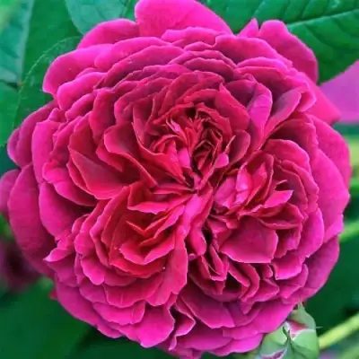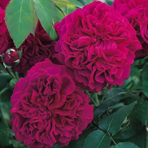 Цветок этой розы – настоящее произведение искусства. Его окраска сочетает в себе красный, насыщенно-малиновый и пурпурный оттенки, создавая поистине волшебный эффект. Форма цветка напоминает шар, диаметр которого достигает 14-15 см. Махровые цветки собраны в соцветия по 3-5 штук, образуя великолепное цветение.