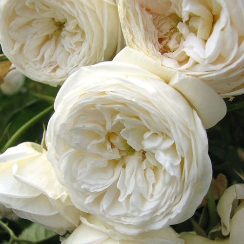 Главная визуальная особенность Артемис — густомахровые цветки диаметром до 8 см. Бутоны раскрываются в шаровидную чашу, каждая — с 40–50 лепестками кремово-белого оттенка. В прохладную погоду появляются зелёные или лаймовые нюансы по краю, что усиливает глубину цвета. Цветы собраны в компактные кисти по 5–10 штук, цветение волнообразное, с июня до заморозков.