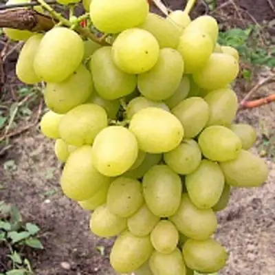 Грозди крупные и очень крупные, чаще цилиндроконические с лопастями, плотные, весом 500–700 г, а лучшие экземпляры достигают до 2 кг. Ягоды яйцевидной или сердцевидной формы, белые, размером 28×23 мм и массой 7–15 г. Мякоть мясисто-сочная, с лёгким мускатным ароматом при полном созревании. Кожица прочная, но не толстая, что обеспечивает высокую транспортабельность.
